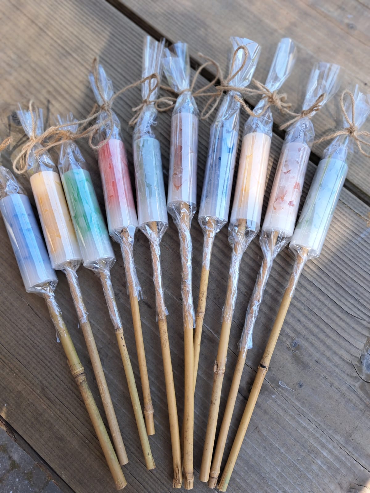 In onze zeepmakerij maken we allerlei zeepproducten in diverse vormen, met verschillende geuren en kleuren. We werken met gietzeep. Deze zeep kan onderhevig zijn aan bepaalde omstandigheden, zoals (zon-)licht en lucht, waardoor u in onze winkel een wat beperkter assortiment aantreft. Op aanvraag kunnen wij verschillende producten op korte termijn produceren. Bijv. slingers, taartjes, bedankzeepjes voor een bruiloft, zeepjes voor Gender Reveal etc. Als u interesse heeft in onze zeepproducten, pakketjes, presentjes en bedankjes neem dan even contact met ons op, wij helpen u graag verder!