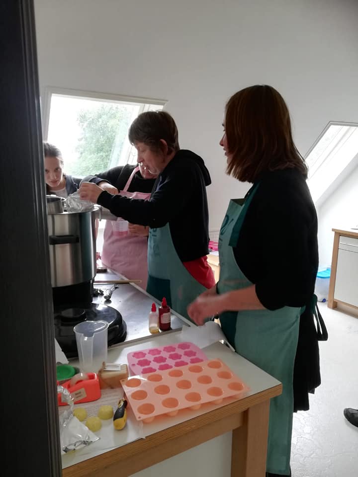 Naast de vele werkzaamheden buiten op het erf hebben we ook een breed aanbod van creatieve werkzaamheden. In ons zeepmakerij, kaarsenmakerij en houtwerkplaats maken we allemaal bijzondere producten. Al deze producten worden verkocht in onze cadeauwinkel 'Nijsgjirrich' met Koffie&Thee Schenkerij bij ons op het erf.